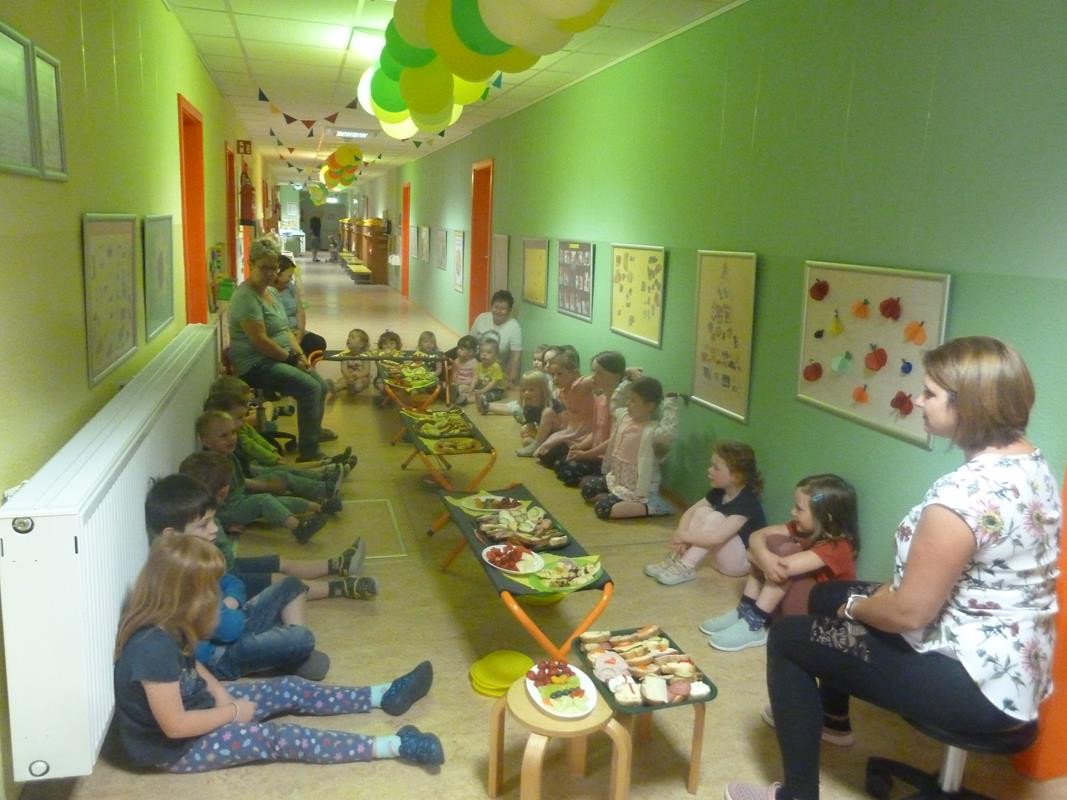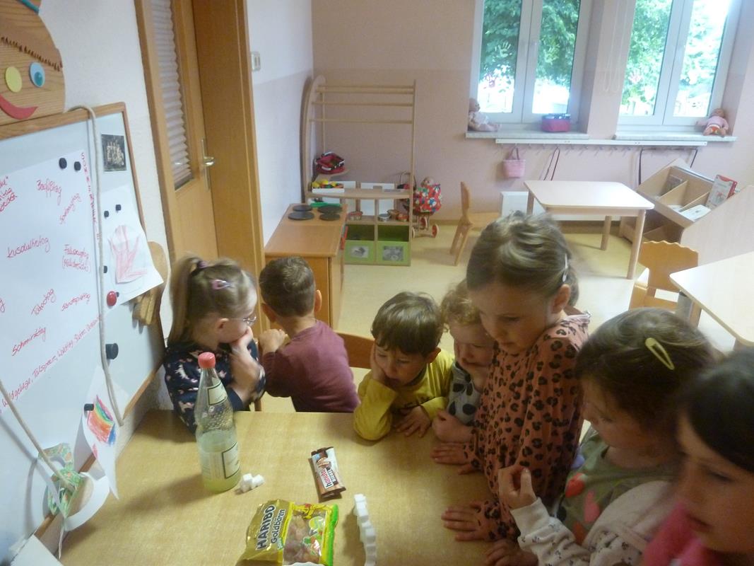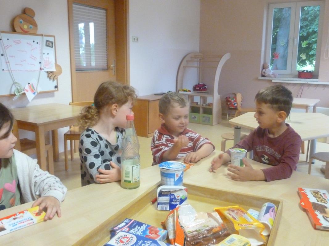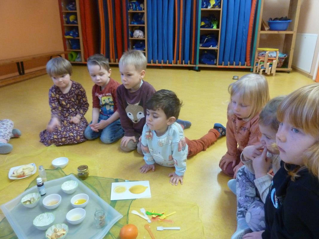 In den nächsten Wochen und Monaten werden sich die Kinder mit dem Thema „Von A wie Apfel bis Z wie Zitrone- Rund um die Ernährung“ auseinandersetzen. Das Thema ist wieder aus Beobachtungen und durch verschiedenste Gespräche unter den Kindern entstanden. Gemeinsam ist bereits eine erste Ideensammlung zusammengetragen, die Stück für Stück wachsen wird.
